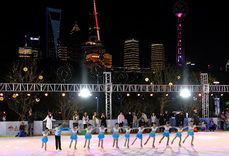 2021年12月23日,小朋友在第三届“上海白玉兰国际冰雪节”开幕式上表演。新华社记者 陈飞 摄