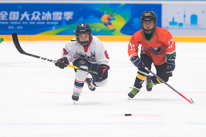 “滑向2022”全国青少年冰球系列赛是大众冰雪季人气最旺的比赛之一。前来参赛的彭俊达年仅10岁,练习冰球却已4年有余,是武汉冰龙冰球俱乐部U10组的前锋。“有一天,我绕着冰场看了一圈,感觉打冰球太帅了,就下定决心要学。”彭俊达说,从学校到冰场单程要45分钟,每周三次训练他一次不落。