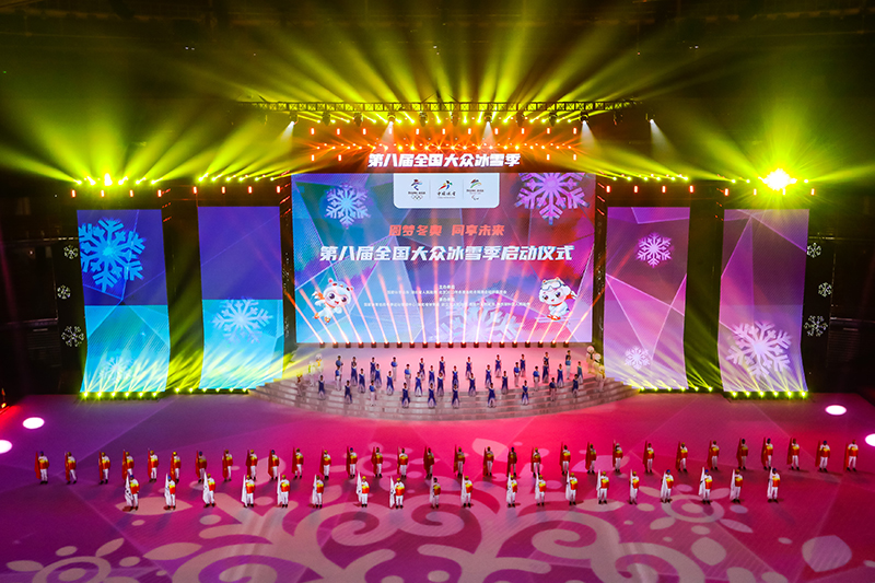 2021年12月19日,在湖北武汉,演员在第八届全国大众冰雪季启动仪式上表演。新华社记者 肖艺九 摄