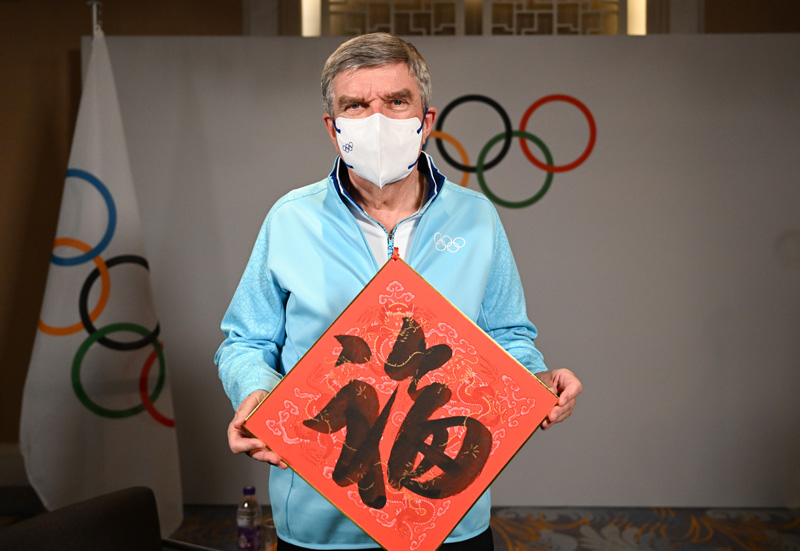 在采访开始前,巴赫手里拿着福字,通过新华社向中国人民拜年,祝大家虎年开心、成功。“冬奥会和春节相逢是完美的组合,虎象征着勇气、力量和成功,这也是我在春节向中国人民送出的祝福。”