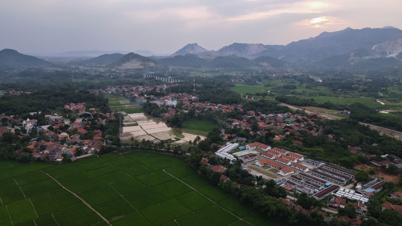 这是1月27日在印度尼西亚西爪哇省普哇加达县拍摄的中国电建水电七局印尼雅万高铁2号隧道项目部营地(右下)和周边村庄(无人机照片)。新华社记者 徐钦 摄