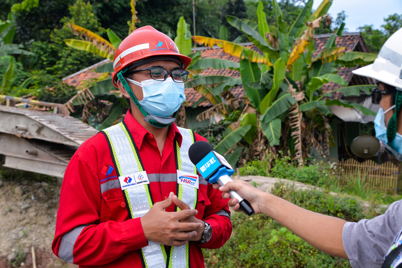1月28日,在位于印度尼西亚西爪哇省普哇加达县的雅万高铁2号隧道施工现场,负责施工现场安全工作的印尼本地安全员亨德利·费尔南达接受新华社记者采访。新华社记者 徐钦 摄