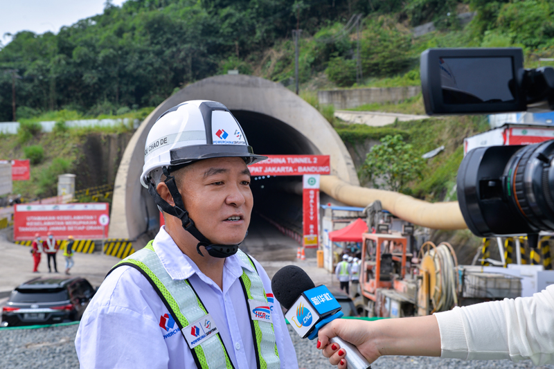 1月28日,在位于印度尼西亚西爪哇省普哇加达县的雅万高铁2号隧道施工现场,负责2号隧道施工的中国电建水电七局项目分部经理周朝德接受新华社记者采访。新华社记者 徐钦 摄