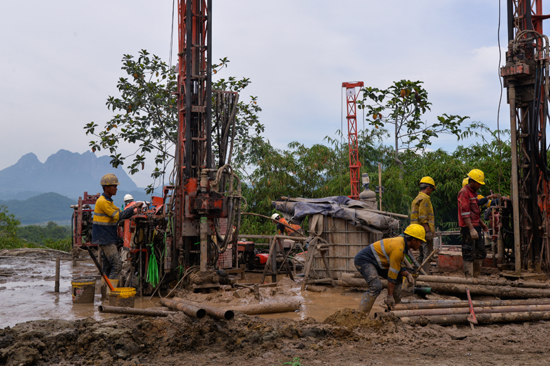 1月28日,在印度尼西亚西爪哇省普哇加达县,工作人员在雅万高铁2号隧道地表灌浆施工现场作业。新华社记者 徐钦 摄