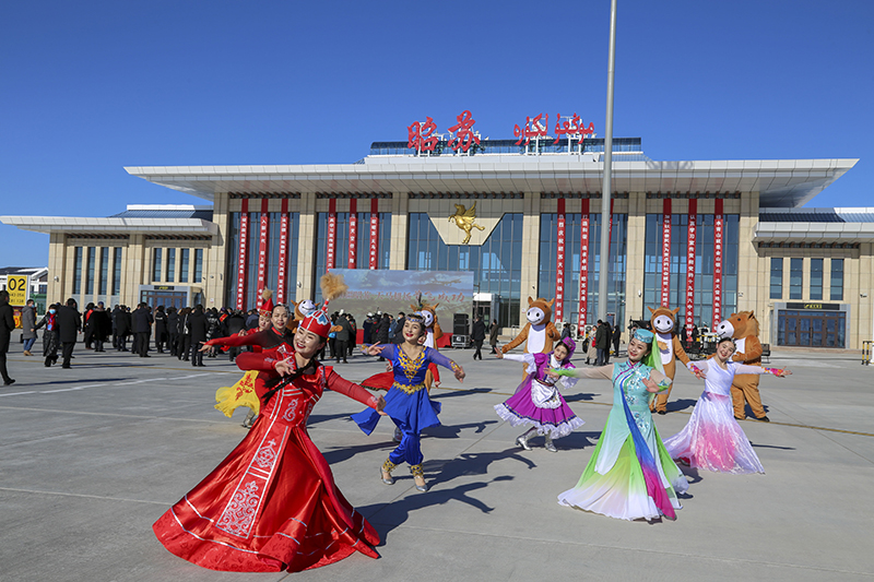 1月28日,在昭苏天马机场,文艺工作者表演节目庆祝新疆首个高原机场正式投入运营。新华社发(李亚峰 摄)