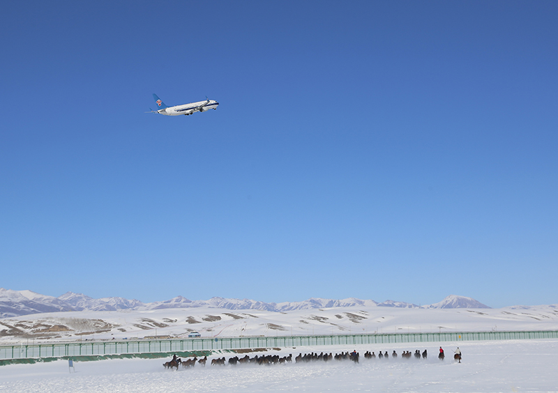 1月28日,昭苏—乌鲁木齐航班从昭苏天马机场起飞。新华社发(李文武 摄)