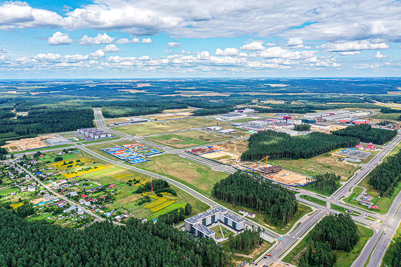 这是2021年8月20日在白俄罗斯首都明斯克郊区拍摄的中白工业园。在两国政府的大力支持下,中白工业园经过几年的大力开发建设,正逐步发展成一个基础设施完善、具备全面招商引资条件的现代化园区。新华社发(中白工业园供图)