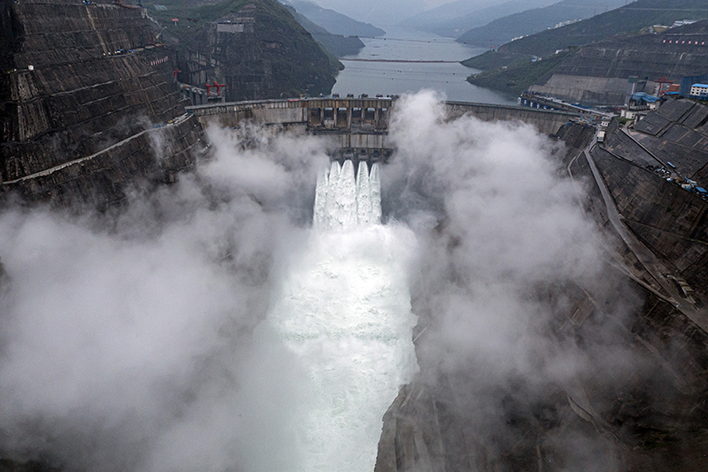 这是2021年7月1日拍摄的投产发电中的白鹤滩水电站。新华社记者 江文耀 摄