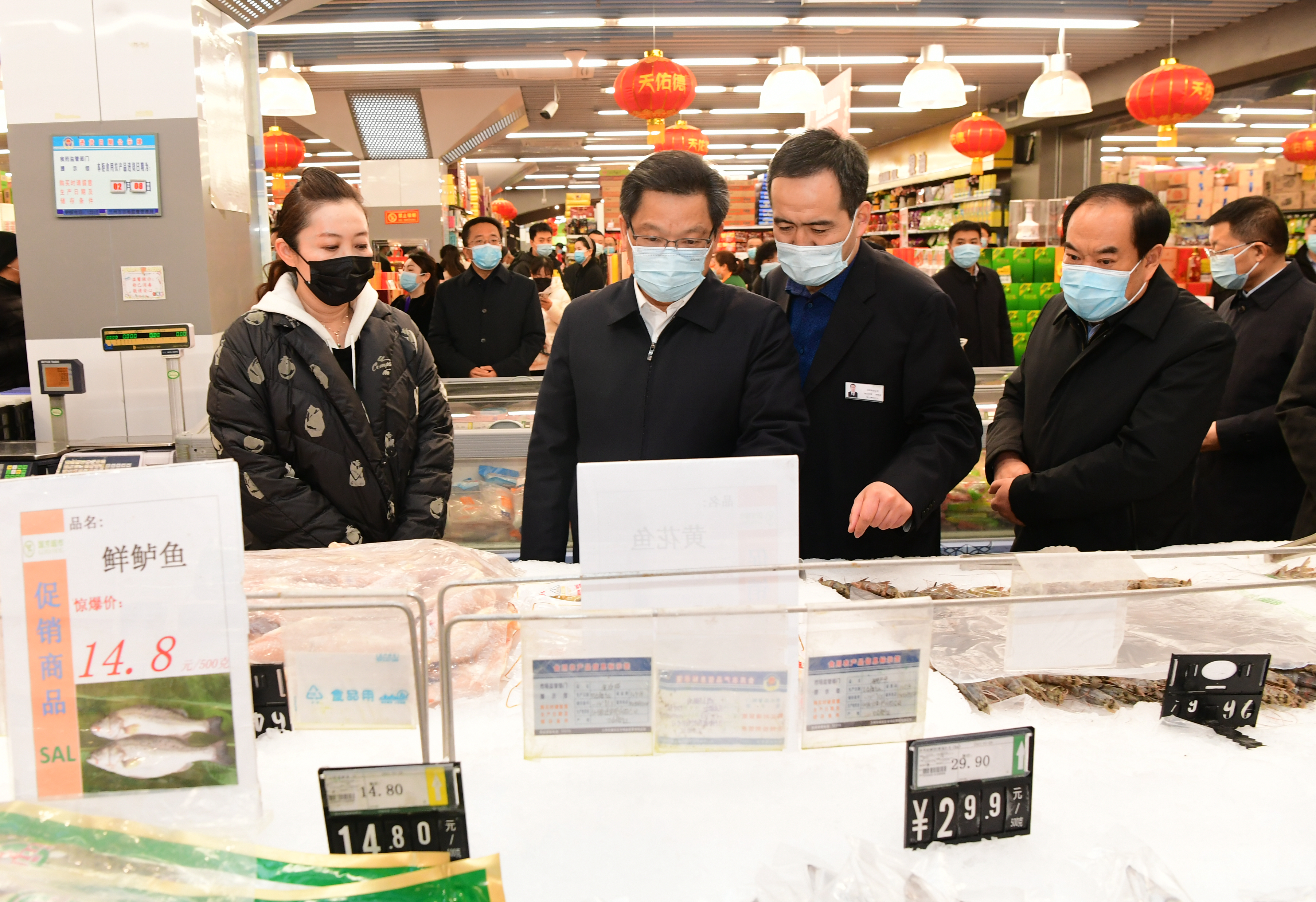 民以食为天。任振鹤高度重视春节期间百姓的“米袋子”“菜篮子”“果盘子”是否安全、是否供应充足。在兰州市城关区东方红广场的国芳综超,任振鹤详细了解春节期间市场供应、物价运行等情况,强调要完善储备调节机制,加强监测预警,加大监管力度,落实好防疫措施,确保春节年货市场购销两旺、保障有序,让家家户户备齐年货过个欢乐祥和的中国年。