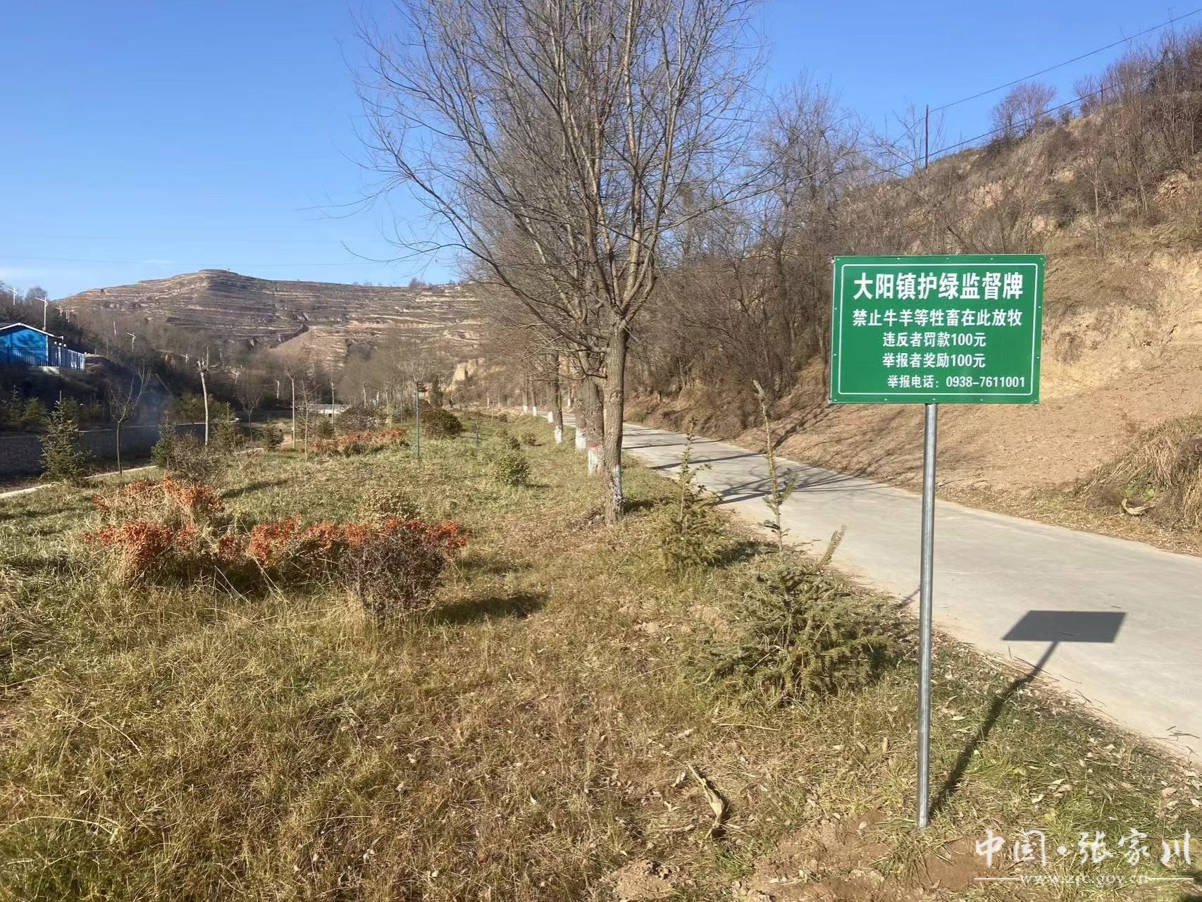 建立监督举报机制。在新栽植的林木、绿植和牛羊易啃食地带制作安放大阳镇护绿监督牌,并附监督举报电话,对违反禁令放牧的罚款100元,对举报人奖励100元。